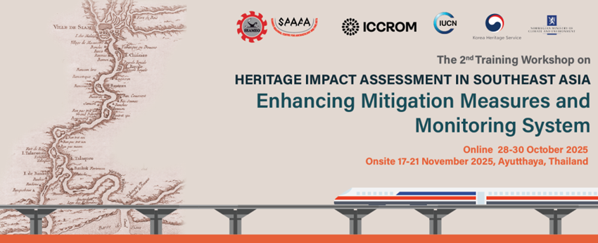 The 2nd Training Workshop on Heritage Impact Assessment (HIA) in Southeast Asia, themed “Enhancing Mitigation Measures and Monitoring System” was carried out in a hybrid format combining online sessions (28-30 October 2025) and an onsite program in Ayutthaya, Thailand (17-21 November 2025). Co-organized by the SEAMEO Regional Centre for Archaeology and Fine Arts (SEAMEO SPAFA) and ICCROM through its World Heritage Leadership Programme, and locally supported by Thailand’s Fine Arts Department and the Office of Natural Resources and Environmental Policy and Planning (ONEP), the workshop brought together 23 participants from 14 countries across Asia, Africa, and the Middle East—including Albania, Brunei Darussalam, Egypt, Indonesia, Lao PDR, Malaysia, Myanmar, Nigeria, Pakistan, the Philippines, Saudi Arabia, Singapore, South Africa, and Thailand.