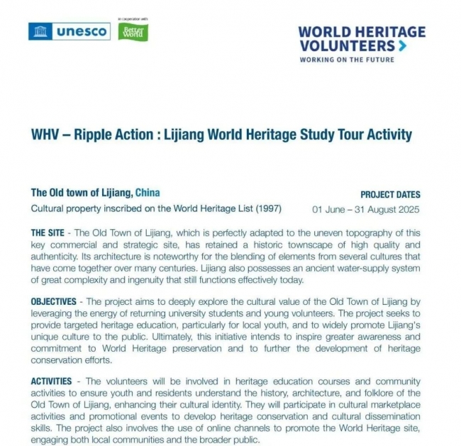 | 2025WHV志愿者招募 | 参与丽江古城青年创变营,记录传播古城守护者故事 |