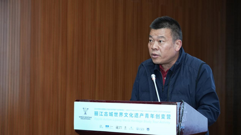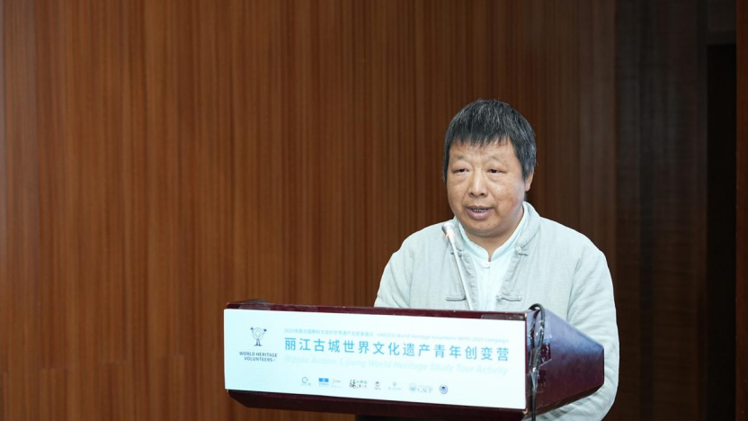 世界文化遗产丽江古城保护管理局副局长和耀春在致辞中提到,青年是社会中最富活力、最具创造性的群体,是未来的建设者和引路人,青年人对知识的渴望、对责任的担当、对行动的热情,是保护传承文化遗产事业最蓬勃的力量。他对青年志愿者们提出了四点期望——成为虚心的学习者、积极的传播者、坚定的守护者和创新的推动者,希望青年以知识和行动守护人类共同的精神家园。