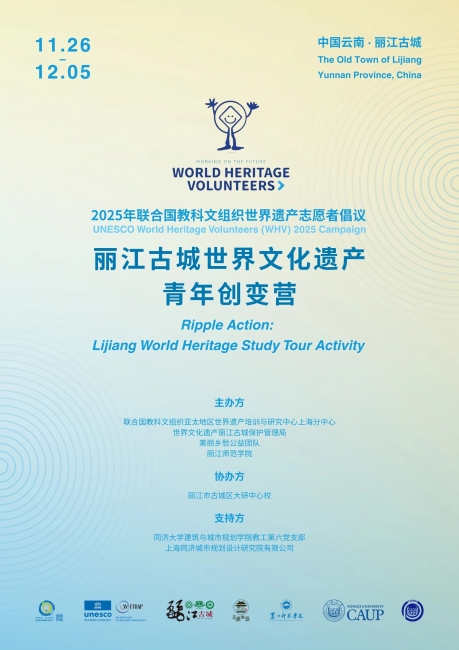 由WHITR-AP Shanghai与美丽乡愁公益团队联合申报的“丽江古城世界文化遗产青年创变营”(Ripple Action: Lijiang World Heritage Study Tour Activity)成功入选联合国教科文组织2025世界遗产志愿者项目(World Heritage Volunteers 2025 Campaign)。今年的活动主题为“以行动塑造未来”(Working on the Future),全球共有41个国家的89个项目入选,我国入选9项。