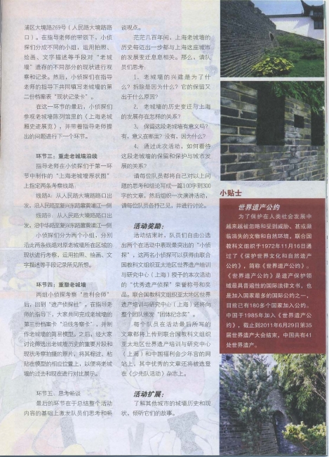 活动围绕上海市的老城墙,按以下五个环节依次展开。